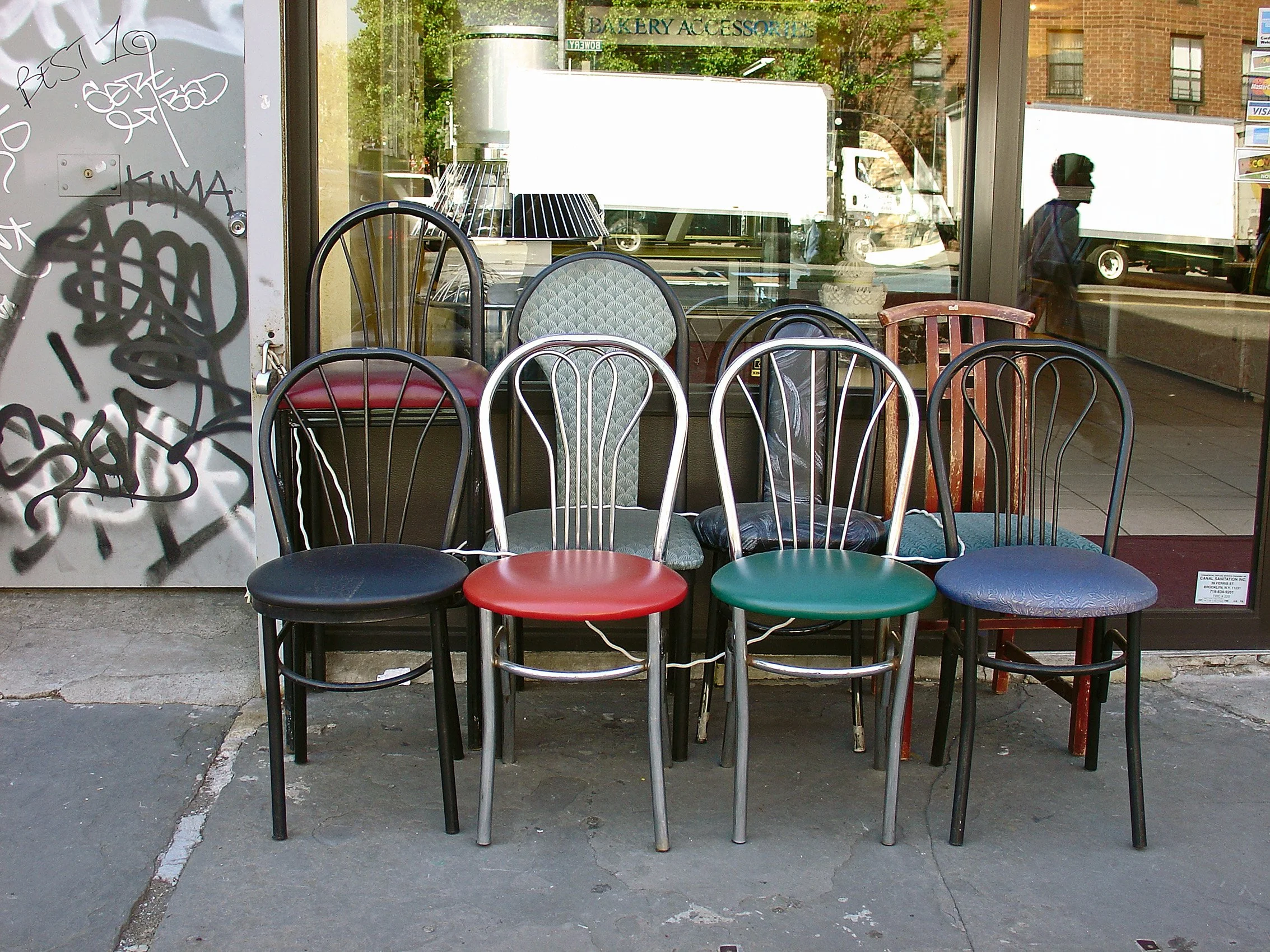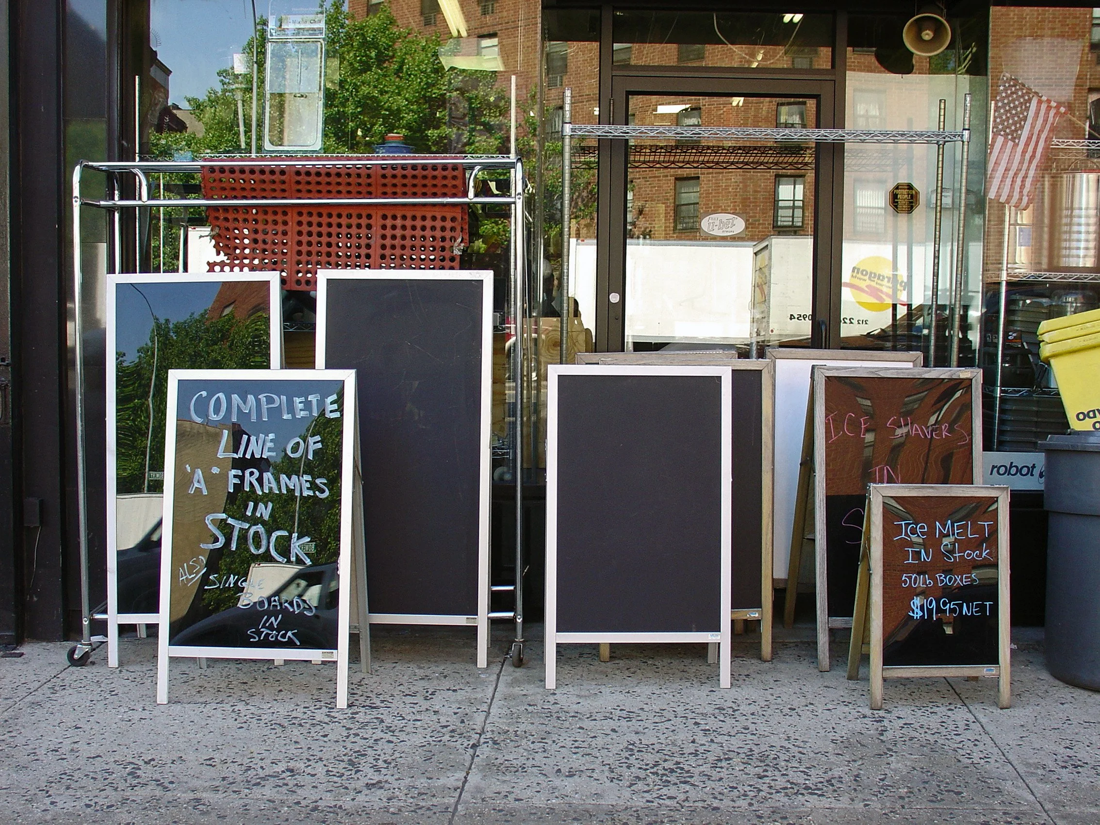 These photographs were taken on the Bowery in New York City and show the displays of industrial kitchen goods for sale on the street. Like the artist’s installations of accumulated objects, these photographs capture occurrences of material excess, commerce, and the poetics of found objects in public spaces.